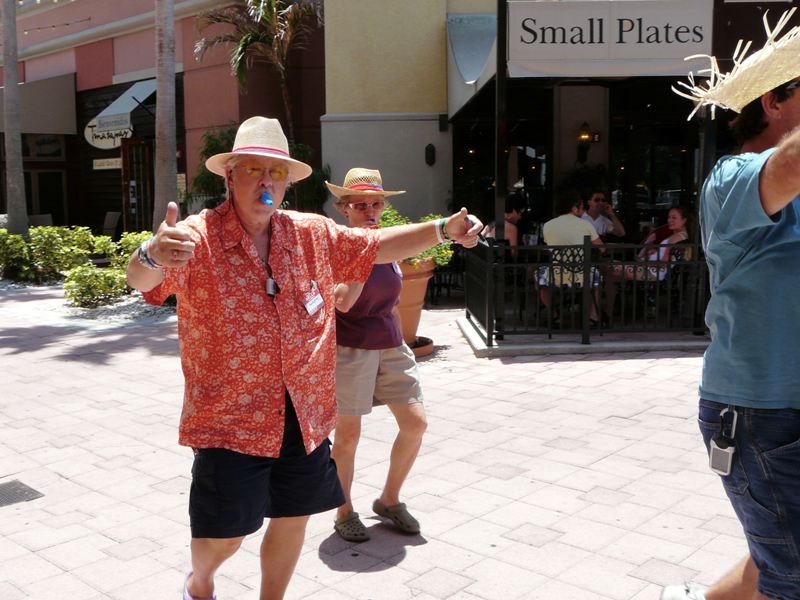 So, we decided to attend another Flash-Mob geoevent like we did in 2008. This time, Captain Biggins (the host) chose a favorite hangout called Channelside for the event. The idea behind a flash-mob is to have everybody milling about waiting for Captain Biggins to arrive at 1:00PM and blow a whistle. The event begins with all of the attendees rushing up and placing a piece of paper with their geo-name on it into a bucket so that they have registered for the event and to participate in the drawings for prizes.